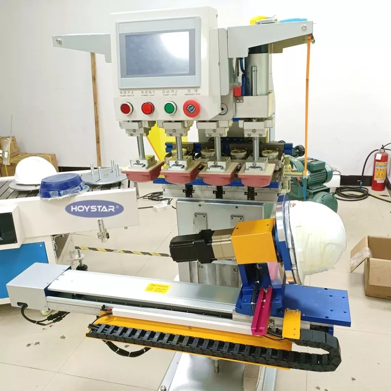 Belanja Mesin Cetak Pad 4 Warna yang disesuaikan untuk Helm dari Dongguan Hoystar Machinery Co., Ltd., yang merupakan salah satu produsen dan pemasok di China. Mesin Cetak Pad Warna HOYSTAR 4 Untuk Helm ini dilengkapi dengan panel kontrol layar sentuh PLC yang mudah dioperasikan. Mesin ini dilengkapi kontrol motor servo untuk pencetakan putar otomatis, menawarkan opsi untuk mencetak pada 1 sisi, 2 sisi, atau 4 sisi helm. Meja kerja dapat digerakkan ke kiri/kanan, sudut putar, ketinggian produk dapat disesuaikan. Setiap kepala cetak dapat disesuaikan secara independen dan dapat diatur secara terpisah.
