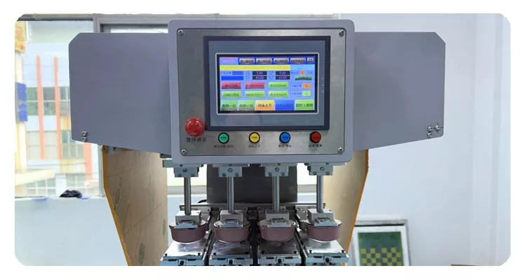 Mesin Cetak Pad 4 Warna Untuk Helm dilengkapi dengan panel sentuh untuk mengontrolnya