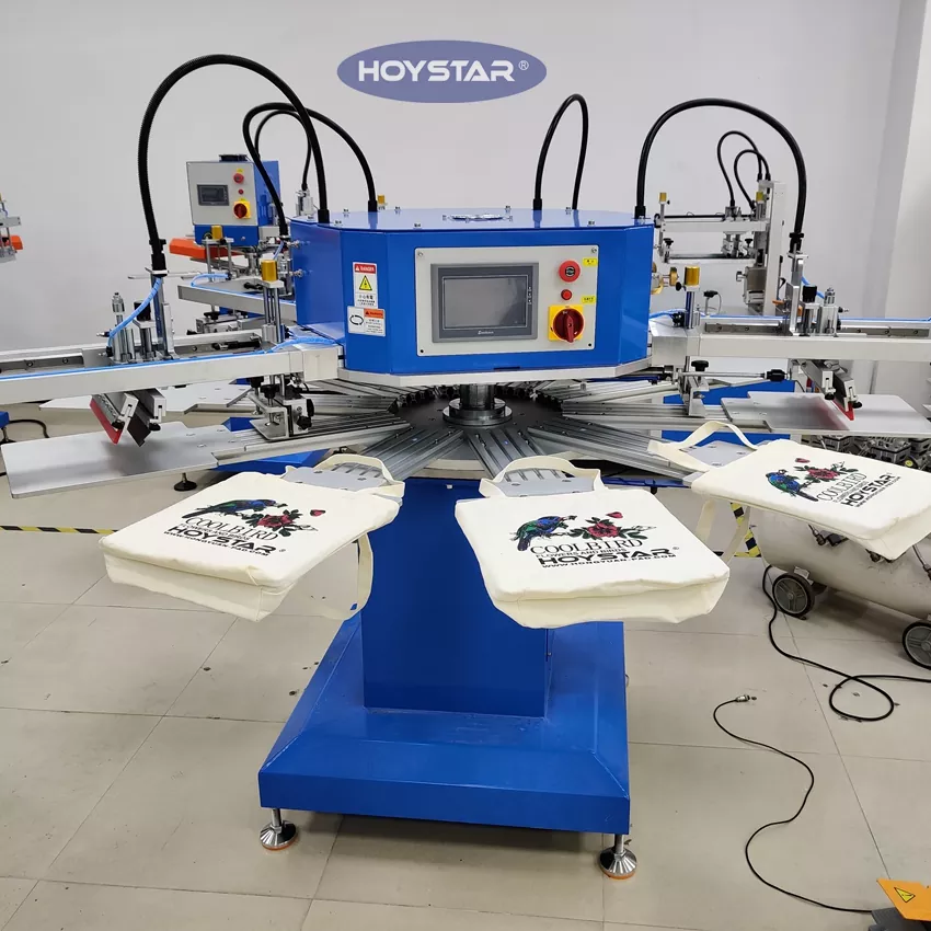 Sebagai produsen dan pemasok profesional, Mesin Sablon Kaos Tas 4 Warna Otomatis HOYSTAR ini dirancang khusus untuk industri tekstil. Dengan output yang mengesankan hingga 1200 buah per jam dapat meningkatkan efisiensi produksi Anda. Desain untuk mencetak label, label, dan tas pakaian, dapat mengubah perlengkapan untuk mencetak berbagai jenis produk. Alat berat dilengkapi meja kerja putar yang memungkinkan bongkar muat cepat dan nyaman—meminimalkan waktu henti dan memaksimalkan hasil.