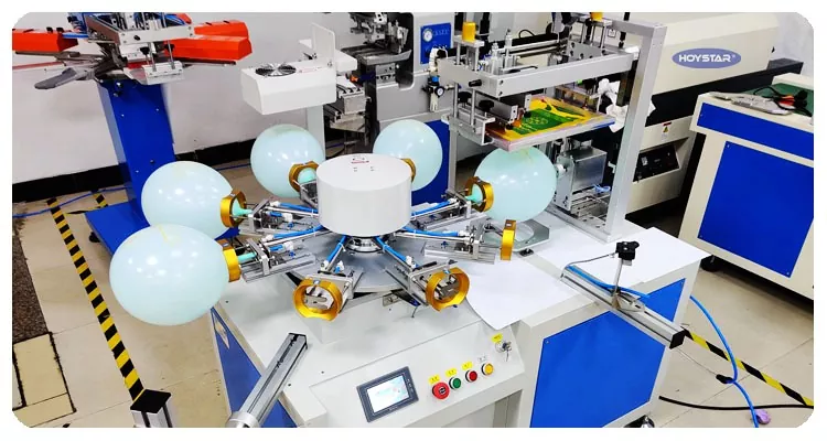 Sebagai produsen dan pemasok profesional, Mesin Sablon Balon 1 Warna Otomatis Penuh HOYSTAR. dirancang untuk mencetak pada balon lateks. Dilengkapi dengan meja kerja putar, pemuatan otomatis, hembusan otomatis, putaran otomatis, pengeringan otomatis, fungsi bongkar otomatis. Kontrol layar sentuh PLC, antarmuka yang ramah pengguna untuk pengoperasian yang aman dan intuitif. Mesin ini memadukan kecepatan, presisi, dan kemudahan penggunaan.