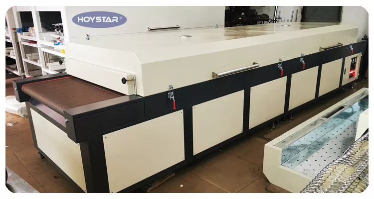 Sebagai produsen profesional di Cina, kami ingin memberi Anda Mesin Pengering Inframerah Besar HOYSTAR dengan Sabuk Konveyor yang berefisiensi tinggi. Cocok untuk mengeringkan berbagai produk—seperti tekstil, bendera, spanduk, lembaran aluminium, kaca, kertas, dan plastik—setelah proses seperti sablon, pengecatan, pengaplikasian perekat pengaturan panas, pencetakan inkjet, dan banyak lagi.
