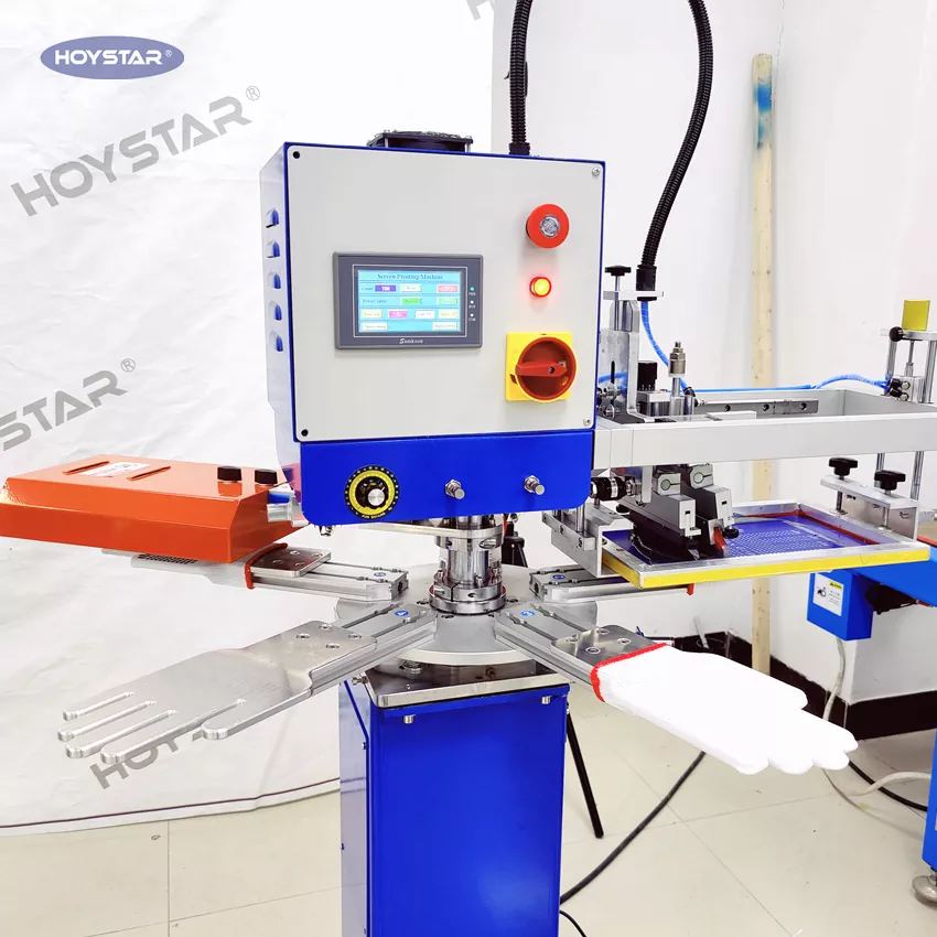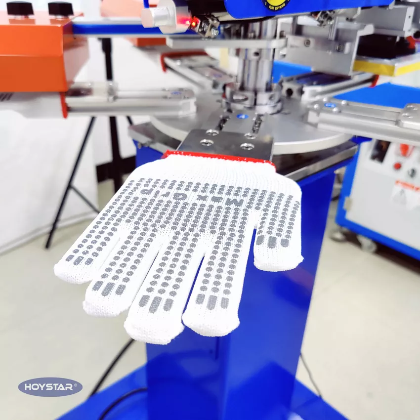 Sebagai produsen dan pemasok profesional, Mesin Sablon Sarung Tangan Non Slip Cepat Tinggi HOYSTAR dirancang untuk aplikasi dalam industri rajutan tekstil. Dengan kecepatan hingga 1000PCS/Jam, cocok untuk mencetak sarung tangan kerja, sarung tangan katun, sarung tangan rajutan, dll. Dilengkapi dengan meja kerja putar, sangat nyaman untuk memuat dan membongkar sarung tangan. Kontrol layar sentuh PLC, sangat mudah dioperasikan. Mesin yang dilengkapi sistem pengeringan dapat mengeringkan silikon dan tinta dengan baik.