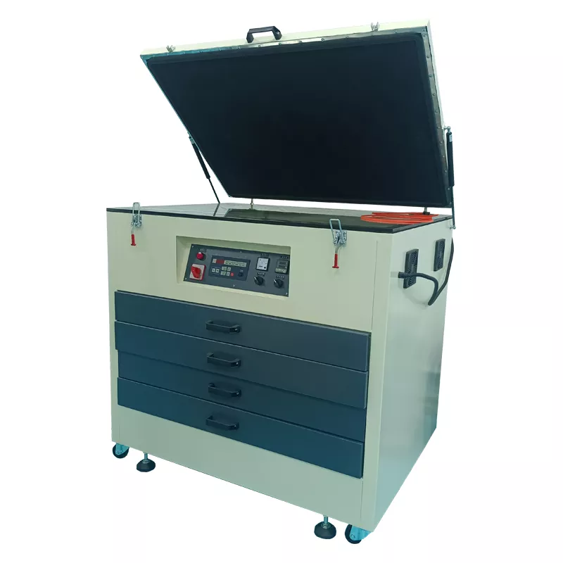 Mesin paparan sinar UV adalah peralatan utama untuk mentransfer pola ke bingkai layar. Mereka menggunakan radiasi ultraviolet untuk menyembuhkan emulsi fotosensitif pada bingkai layar dan membuat pola templat yang tepat berdasarkan gambar desain.