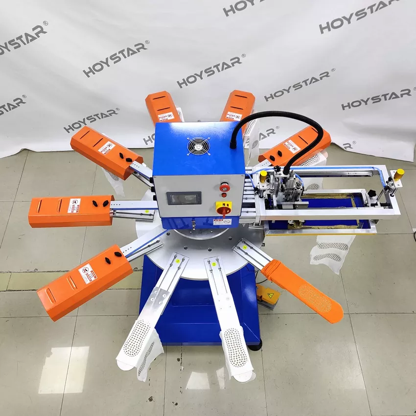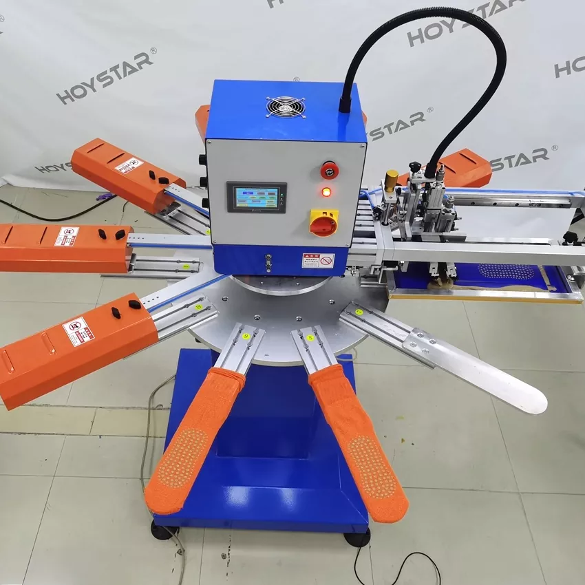Sebagai produsen dan pemasok profesional, Mesin Sablon Cepat Tinggi HOYSTAR untuk Kaus Kaki dirancang untuk aplikasi dalam industri rajutan tekstil. Dengan kecepatan hingga 1000PCS/Jam, cocok untuk mencetak kaos kaki non-slip, kaos kaki bayi, kaos kaki dewasa, kaos kaki sepak bola, dll. Dilengkapi dengan meja kerja putar, sangat nyaman untuk memuat dan membongkar kaos kaki. Kontrol layar sentuh PLC, sangat mudah dioperasikan. Mesin yang dilengkapi sistem pengeringan dapat mengeringkan silikon dan tinta dengan baik.
